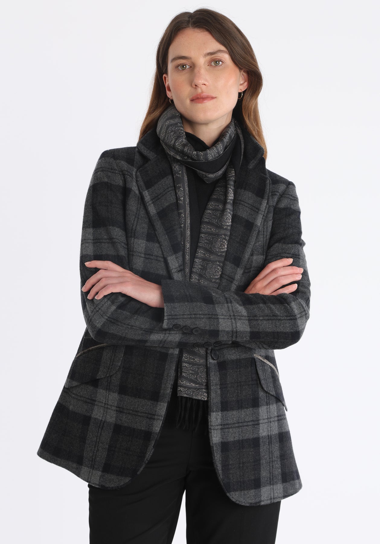 Black Cashmere Scarf | Charcoal Paisley Silk | Fitting Guide