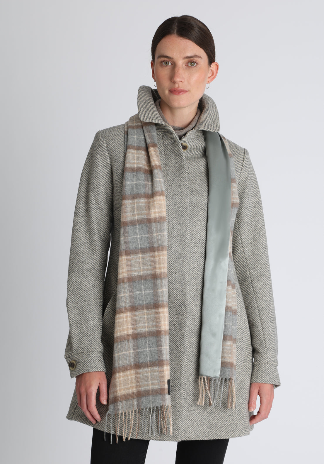 Natural Check Cashmere Scarf | Silver Blue Silk | Fitting Guide